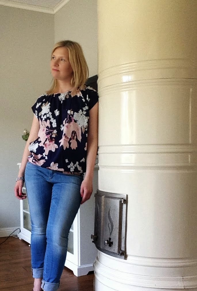 Asua eiliseltä ja tältä päivältä. Kukkapaita ja farkut, vähän kukkamekko fiilistää, mutta ei kuitenkaan. Astetta modernimpi kesäasu.