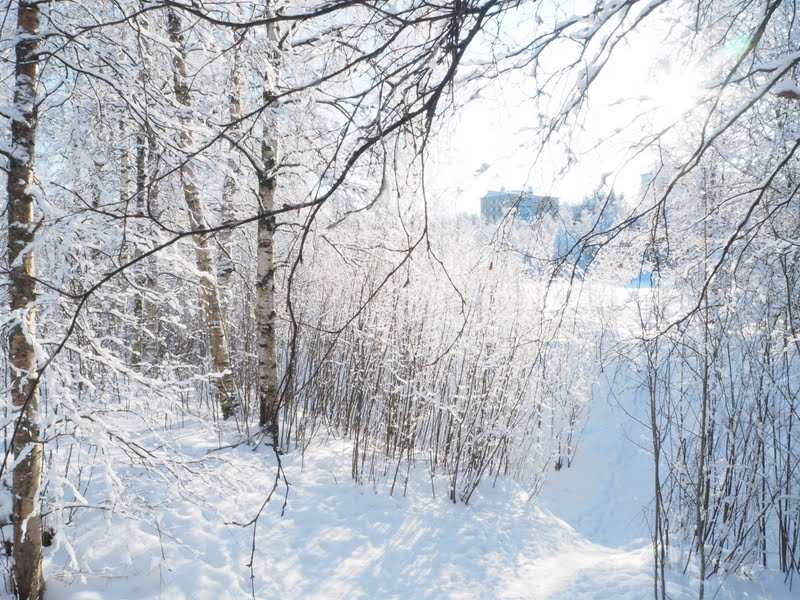 Talviloman tunnelmia kuvien muodossa, tosin kuvat ovat  viime lauantailta ja täällä ei ole enää lunta puissa ollenkaan.