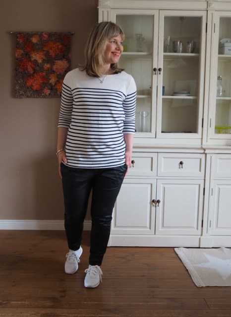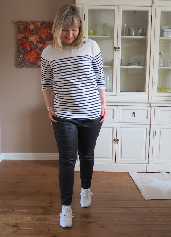Tälläinen simppeli asu tänään päällä. Olen niin ihastunut näihin adidaksen lenkkareihin, etten millään malttaisi odotella kuivempia kelejä, mutta täytyy vielä malttaa, etteivät muutu heti ruskeiksi. Raitapaita on ehdottomasti kaivettava joka kevät kaapista raikastamaan tyyliä. hieman nafti päällä, vai tuntuuko vain, kun nykyään olen suosinut huomattavasti löysempiä paitoja. Jalassa täällä jo aiemminkin vilahtaneet nahkaa jäljittelevät housut.
