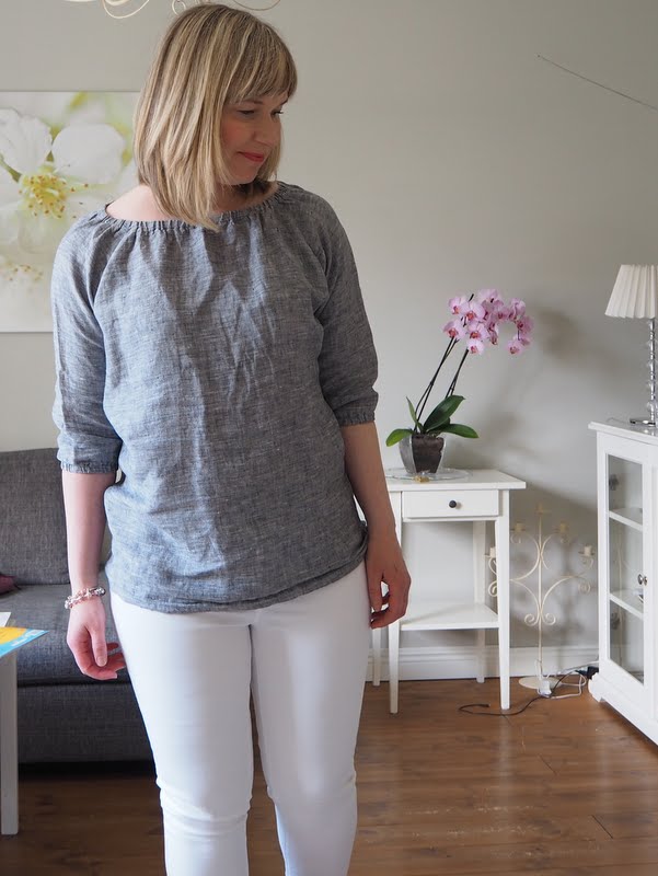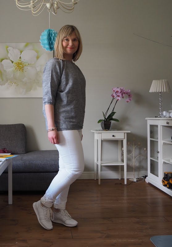 Paita on vuosi sitten tilattu by Pias:in verkkokaupasta, jota olen oppinut tänä keväänä vasta pitämään. Paita on aina hieman kurttuinen, vaikka olinkin ennen näitä kuvia sen silittänyt, mutta sellaista pellava vaan on.