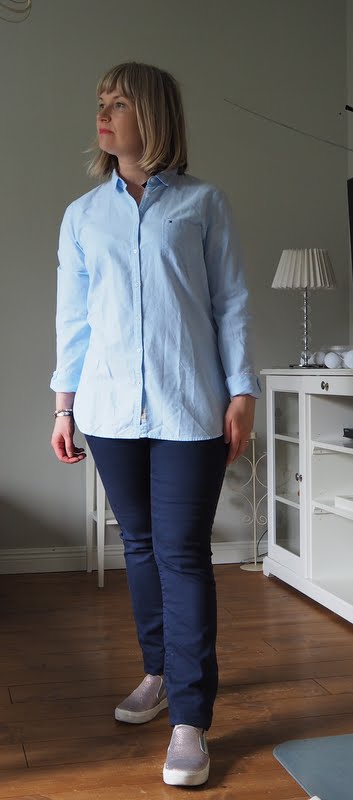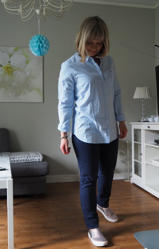 Jälleen asupostausta, plääh kiinnostaakohan nämä ketään. Kuitenkin tällainen asu tällä kertaa, hyvin siniseen painottuva, hauskana yksityiskohtana nämä kengät, jotka on aika mageet, kimallusta riittää, ansaitsisivat ehkä oman postauksen.
