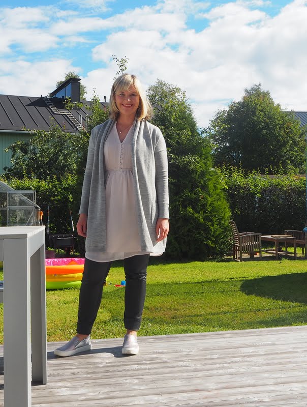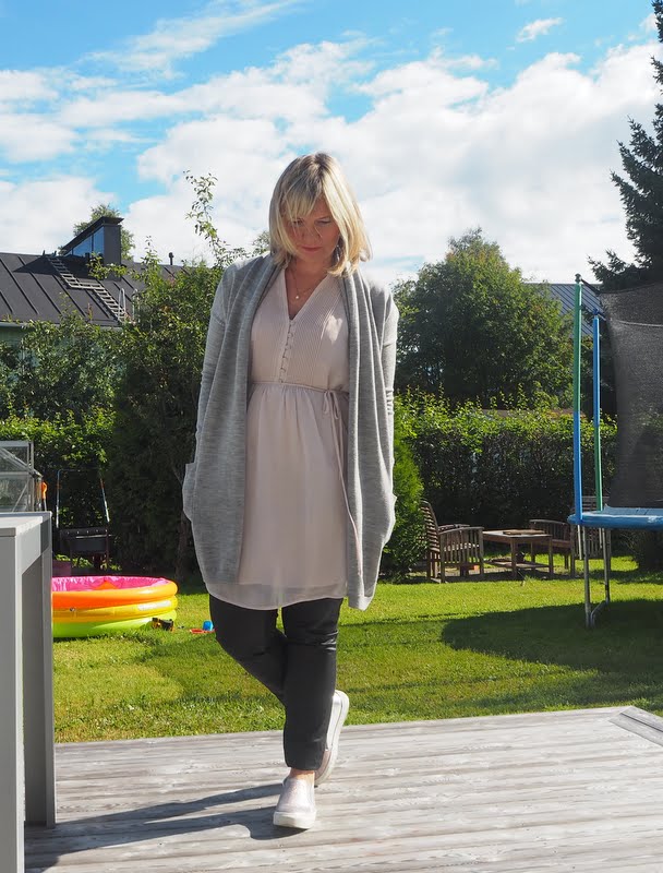 Valkoiset housut sylissä pidettävien lasten kanssa on kieltämättä epäkäytännöllisyyden huippu, housut sotkeutuu takuuvarmasti. Mutta onhan ne niin kivan näköiset, että mahdollinen sotku mahdollisuus täytyy vain kestää.