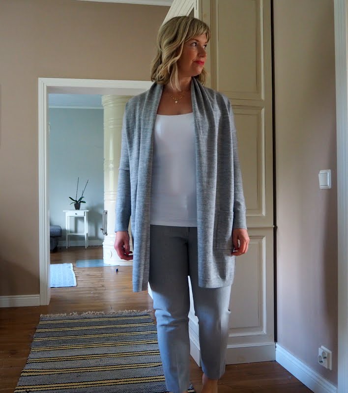Harmaa ja valkoinen väriyhdistelmä on mieluinen, näiden värien liitto on mielestäni erityisen raikas. Harmaalla ja valkoisen yhdistelmällä ei voi mennä pieleen. Kokeilin monia eri vaihtoehtoja harmaan kaveriksi, valkoinen vei ehdottomasti voiton.