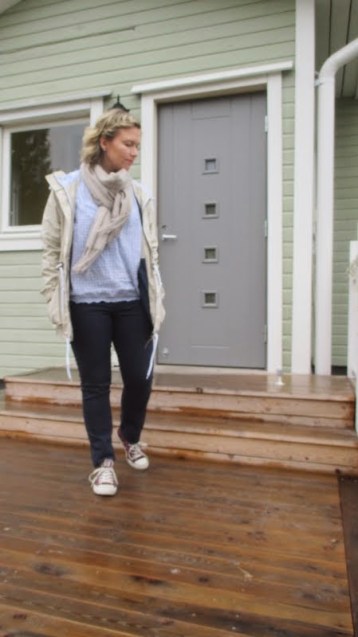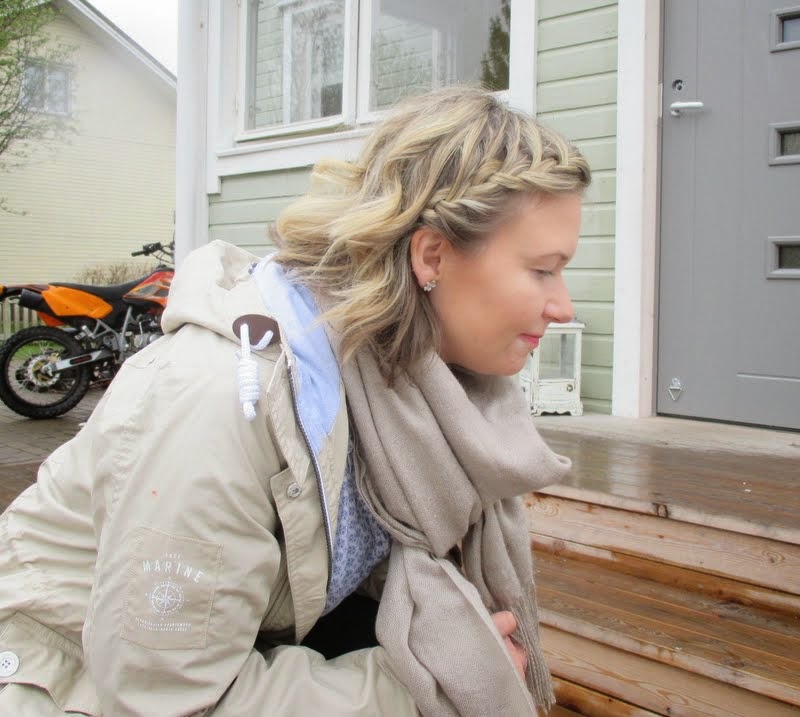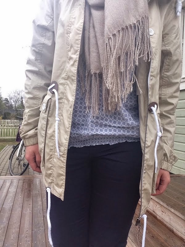 Takki Didrikson, huivi Gant, paita Lindex, housut h&m, kumisaappat Treton