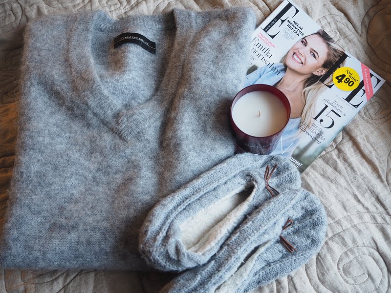 Tässä on minun viime aikoina suosimat vaatekappaleet, lämmin neule ja tossut.