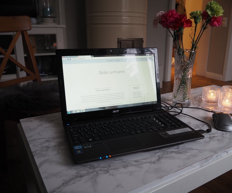 Mieheni kysyikin, että kannattaisiko ensin suunnitella, mitä kirjoittaa, eikä vain kirjoita hetken mielijohteesta, niinkuin joidenkin postausten kanssa on käynyt. Minkäs mahdat, jos on tottunut tekemään asiat vähän extempore. Ei ole tapaistani suunnitella asioita kovin pitkään, vaan menen vähän tilanteen mukaan. Tavallaan silloin saan myös enemmän itsestäni irti, jos keksin idean on se melkein heti toteutettava, ettei vaan innostus katoaisi ja tulisin liian itsekriittiseksi, koska sen jälkeen tästä blogin tekemisestä ei tulisi mitään.