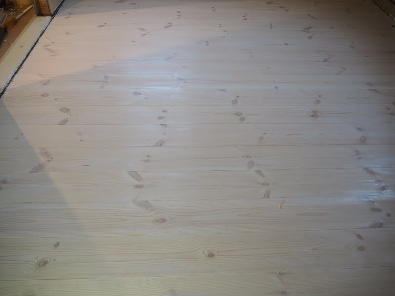 Alla on meidän pukeutumis/vaatehuoneen uusi lattia vasta käsiteltynä lumen sävyisellä vahalla. Vessaa pintaremontoidaan myös.
