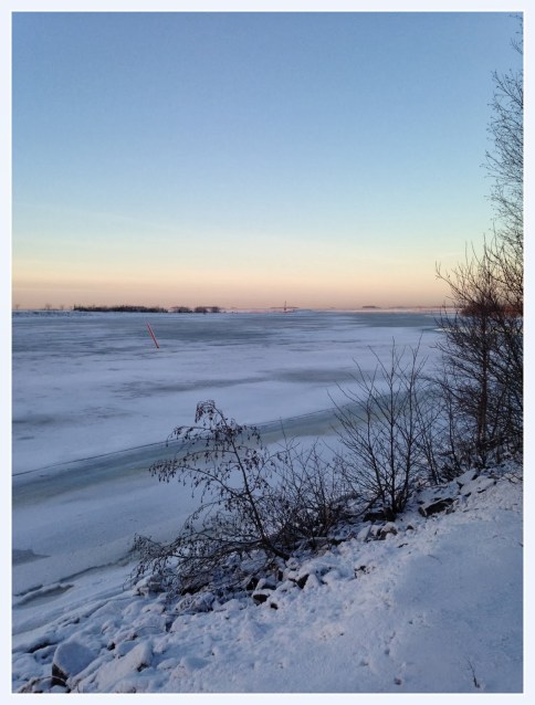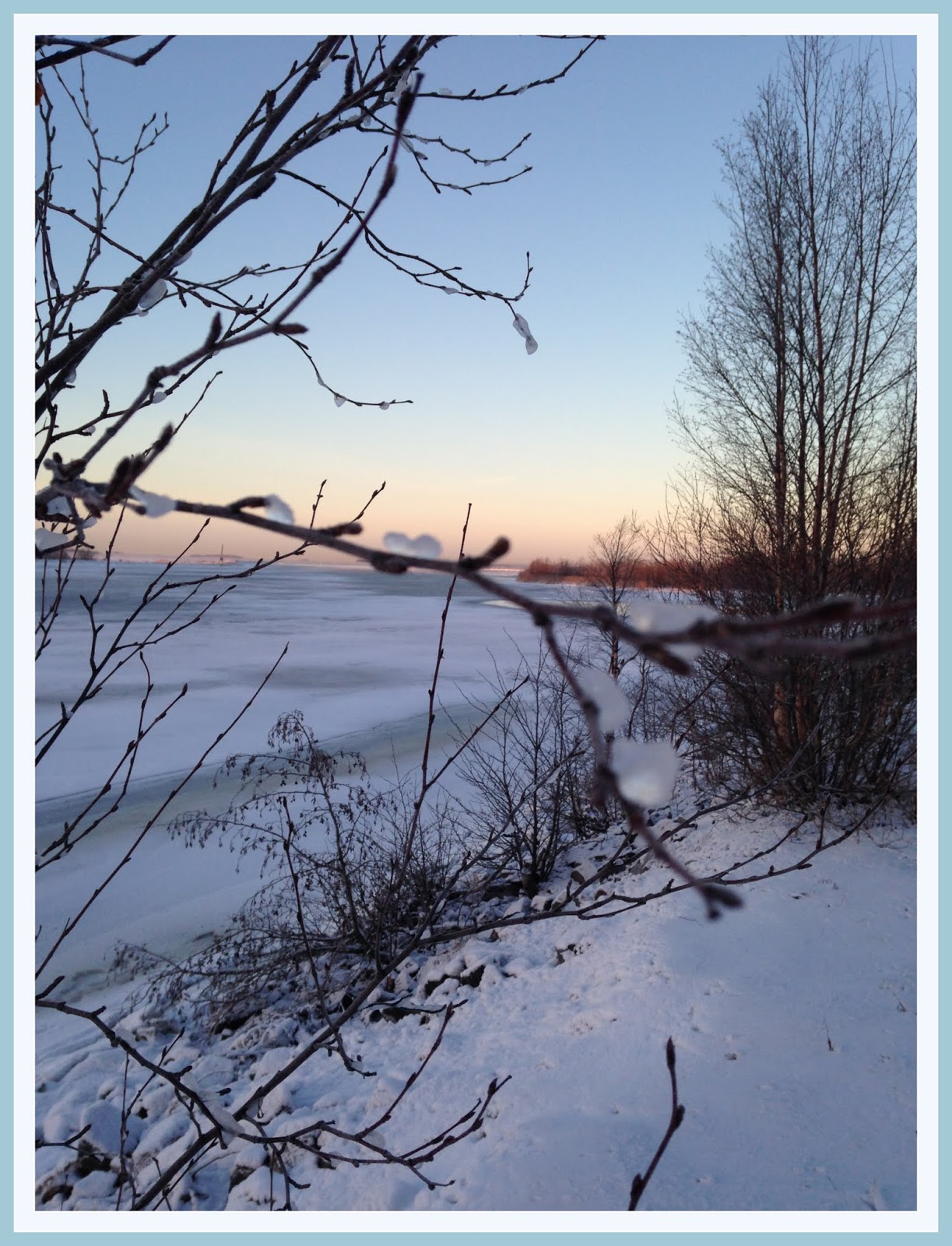 Ainakin tämä pakkanen (-12) ja luminen maisema merelle.