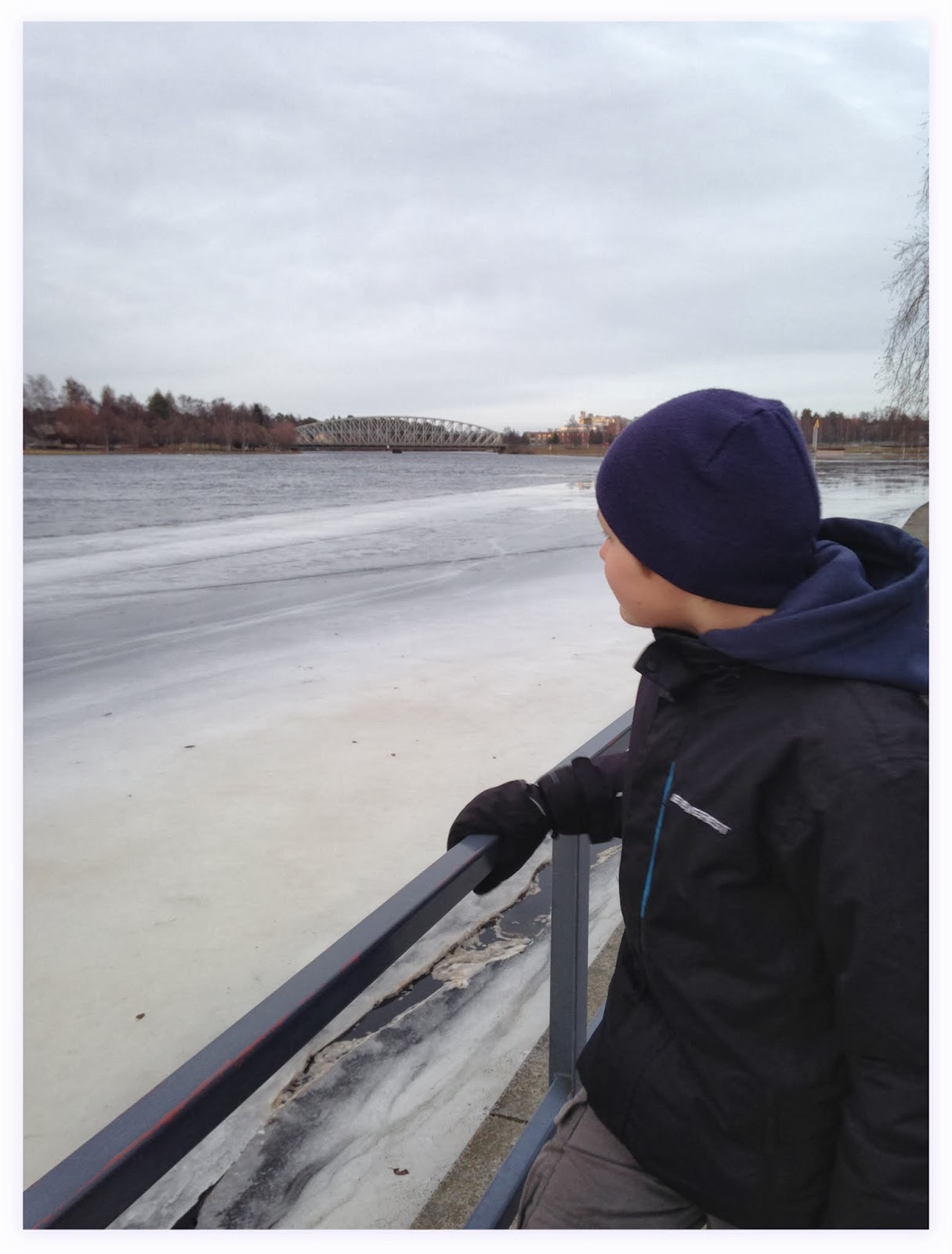 Auringon paiste keskellä pimeintä aikaa. Pitää kiirettä, että ehtii valoisaan aikaan ulos. Varsinkin, jos unta riittää kymmeneen asti. Terkkuja vaan esikoiselle. 😉