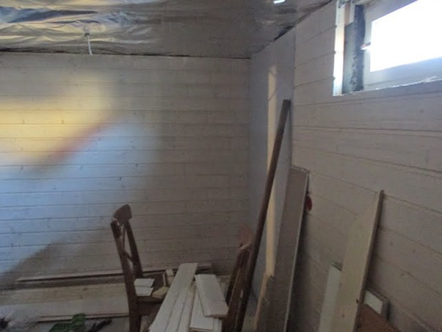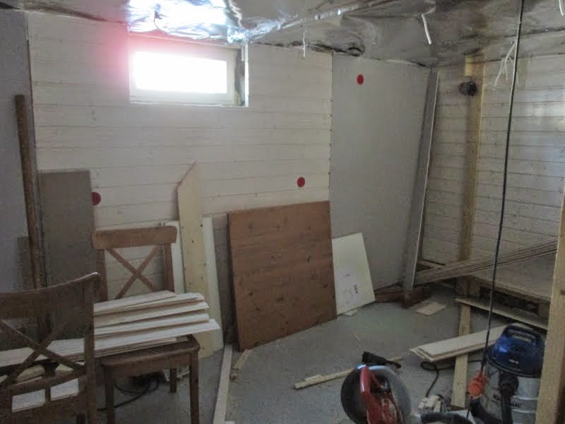 Huone on vielä kovasti keskeneräinen, mutta loppusuoralla aletaan jo olla. Kun miettii mitä olemme kellarissa tehneet aiemmin, kellarin lattian särkeminen ja lattian kaivaminen sekä kivijalan jatkaminen alaspäin on totisesti vaatinut mieheltäni innostusta rintamamies talon remontointiin. Tämä pintaremontti on kivaa näihin aikaisempiin ponnistuksiin verrattuna.