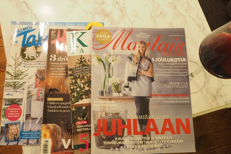 Tykkään eniten ruotsalaisista ja tanskalaisista jouluaiheisista sisustuslehdistä. Mielestäni niissä on juuri sellainen tunnelma, ettei olla yritetty liikaa sisustaa, vaan kodit näyttävät asutuilta ja vähän huolettomilta. Paljon vanhoja taloa, joissa on säilytetty ajan henki.