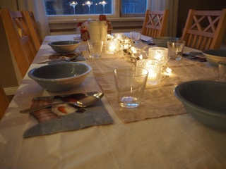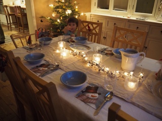 Esikoinen kotiutui kahden päivän koulun järjestämältä reissulta ja tein sen kunniaksi lasagnea ja laiton vähän kynttilöitä. Ruoka ainakin maistui pojille. Yleensä ruokailu menee niin, että hyvä kun itse ehtii pöytään istua on jo keskimmäinen lähdössä pois, kiirettä pitää.