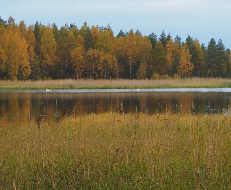 Pääsin seuraamaan joutsen pariskunnan eloa suolammella. Upea lintu, mielettömän hieno ja iso ääninen ilmestys tämä joutsen. Joutsenen kiljahduksia lukuunottamatta metsässä oli niin ihanan hiljaista.