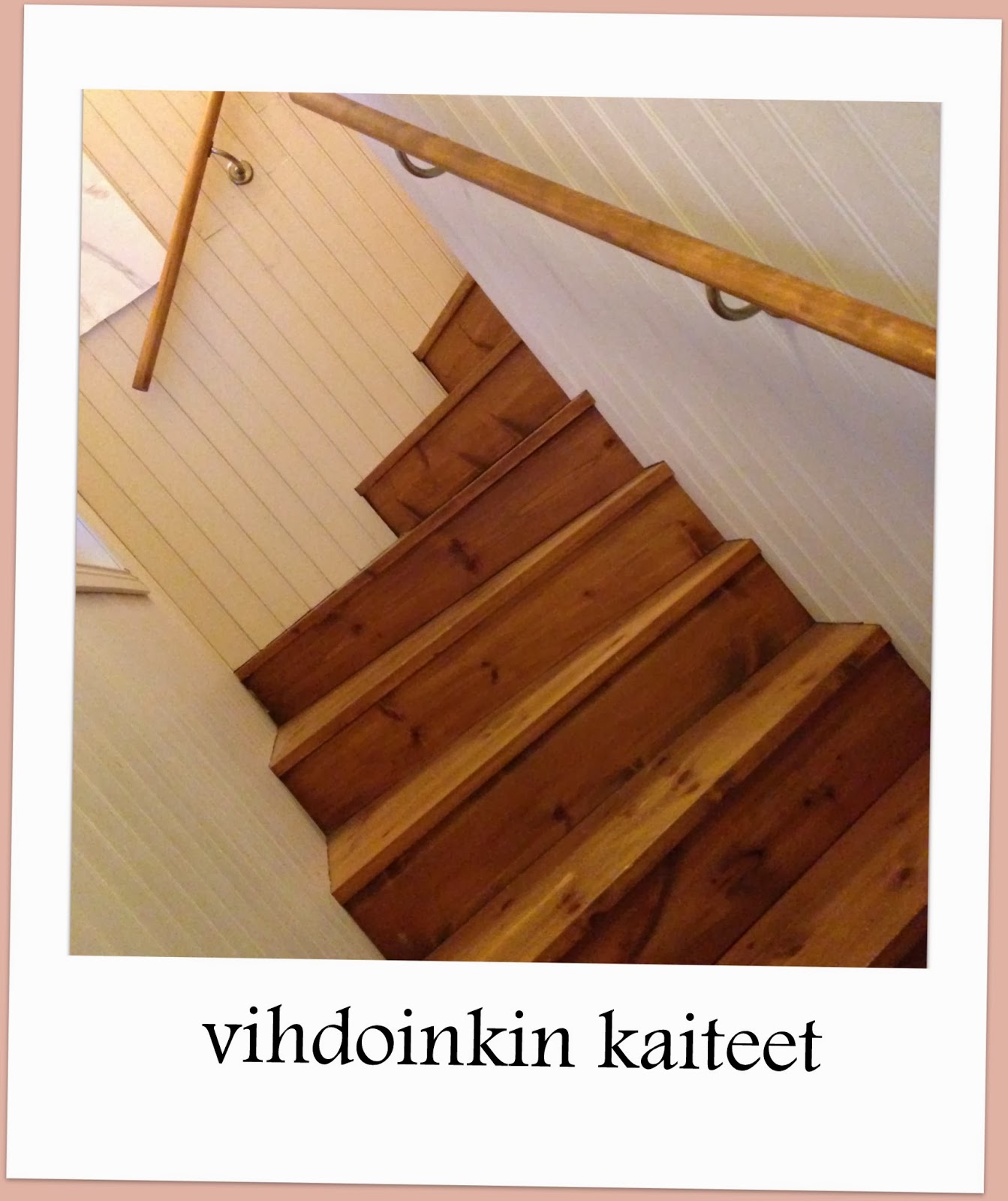 Viikonloppuna saatiin vihdoin ja viimein laitettua meidän yläkerran portaisiin kaiteet. Kylläpäs sitä voi ilahtua pienistäkin aioista, nyt kun menee portaisiin oikein yllättyy, hei täällähän on kaiteet. 😉 Kuinka monta kertaa niitä onkaan aiottu laittaa, portaat on rempattu varmaan 7 vuotta sitten… Listojakin laitettiin portaikkoon viikonloppuna, mutta ei nyt kuitenkaan ihan kaikkia, jää vielä tulevaisuuteenkin näpertelyä portaikon suhteen.